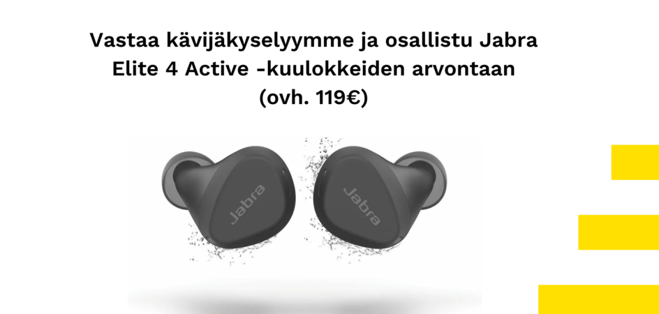 - Palkinnoksi arvotaan langattomat Jabra Elite 4 Active -kuulokkeet (à 119 €).